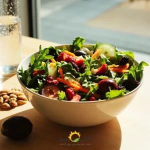 - سبزیجات برگ سبز و فلفل دلمهای: سالاد اسفناج یا کلم پیچ را با فلفل دلمهای قرمز یا نارنجی (که سرشار از ویتامین C هستند) ترکیب کنید.