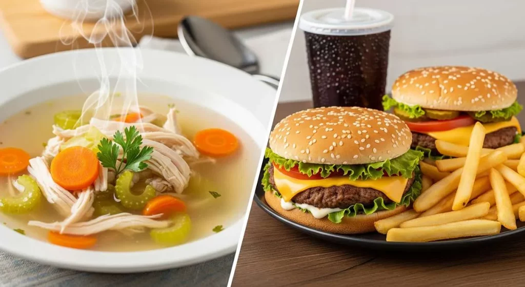 سوپ مرغ حاوی الکترولیتها و مواد مغذی است که در اثر اسهال از دست میروند. همچنین، سوپ مرغ به هیدراته شدن بدن کمک میکند.